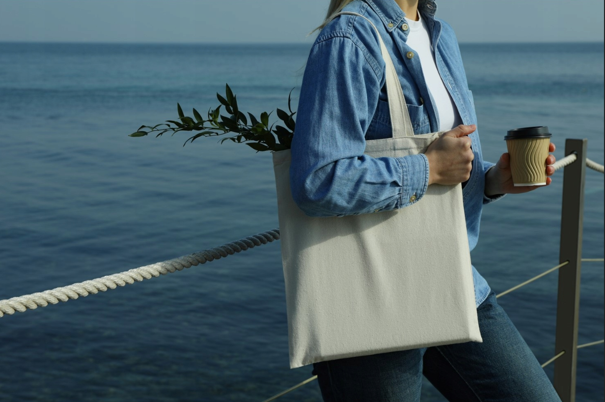 - Umweltfreundliche Alternative: Wiederverwendbare Baumwolltasche als nachhaltiger Ersatz für Plastiktüten.
