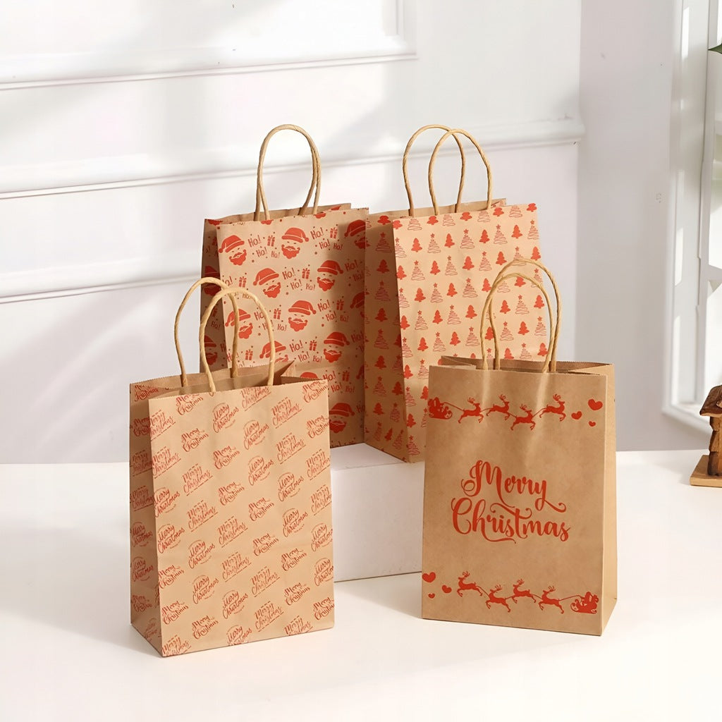 Braune bedruckte Weihnachtstüten vereinen Funktionalität, Ästhetik und Umweltfreundlichkeit. Hergestellt aus starkem Kraftpapier und mit farbenfrohen Weihnachtsmotiven verziert, sind sie eine attraktive und praktische Möglichkeit, Geschenke schnell und elegant zu verpacken. Sie verleihen Geschenken einzigartigen Charme und festliche Magie.