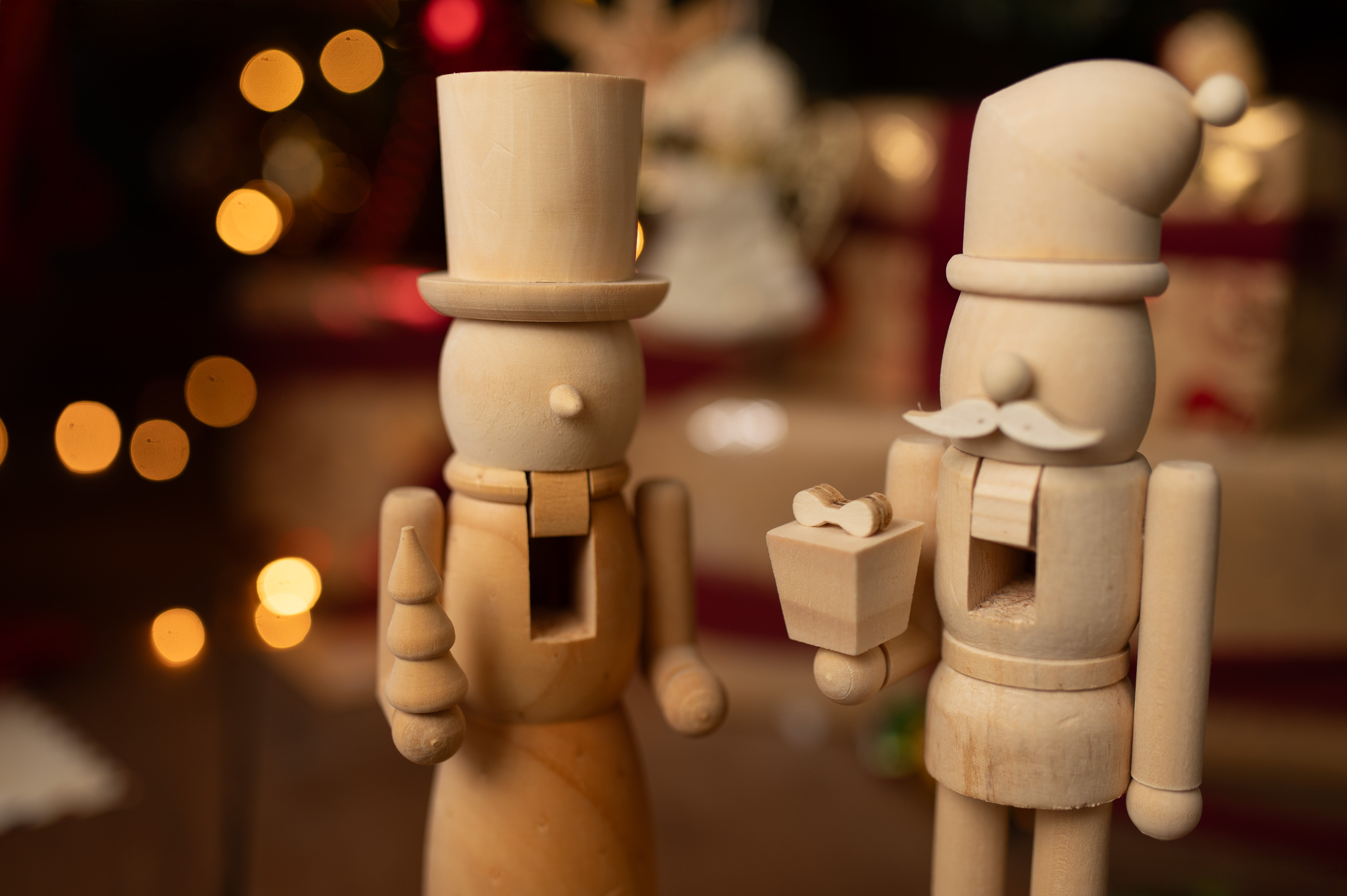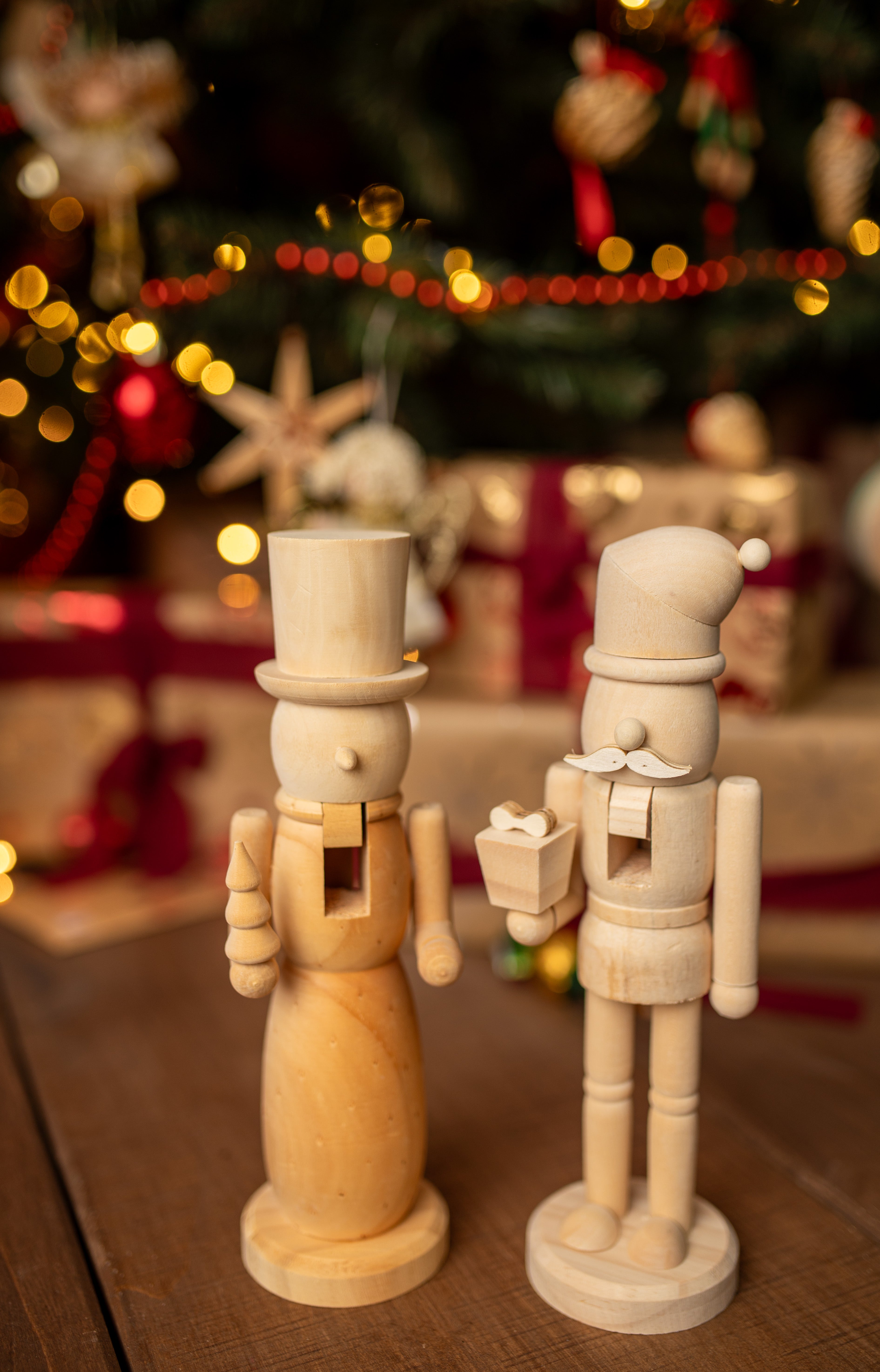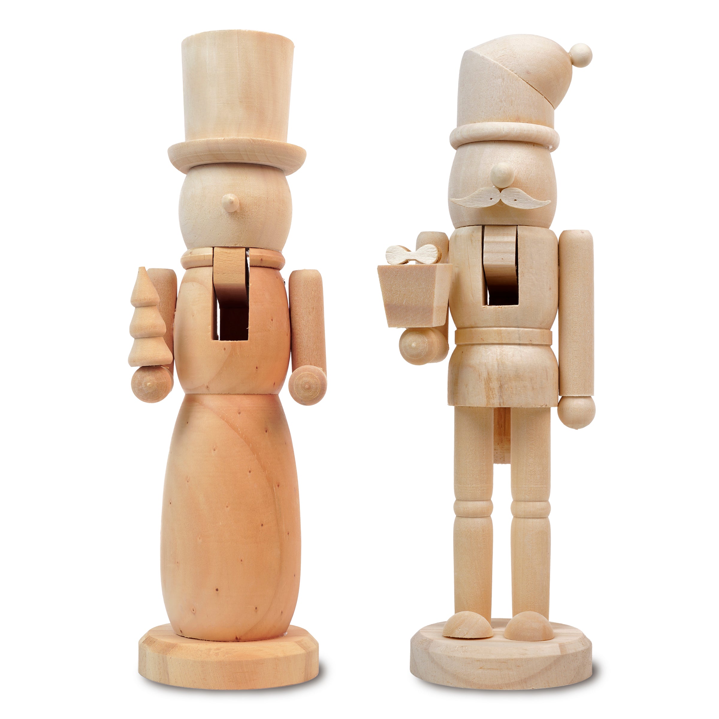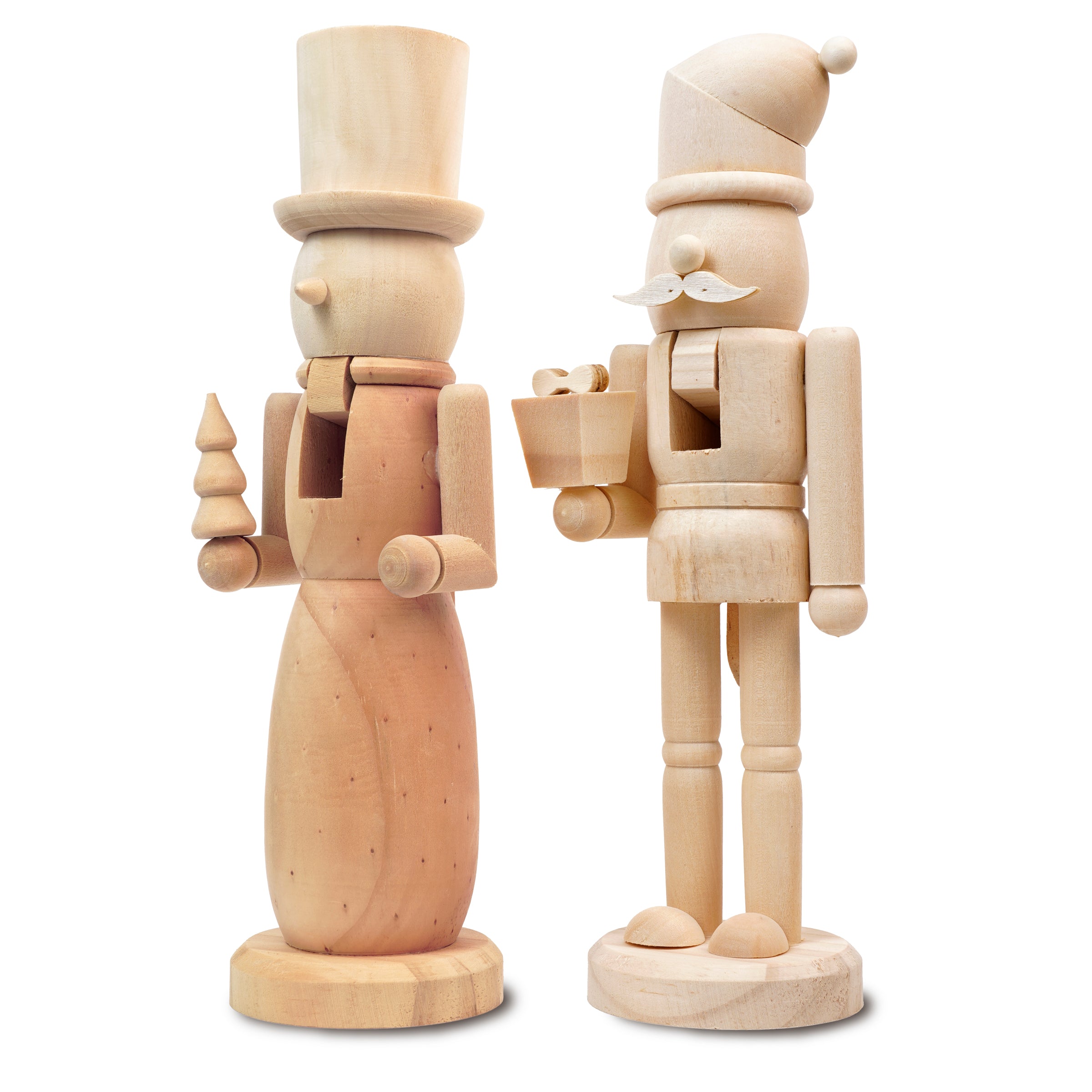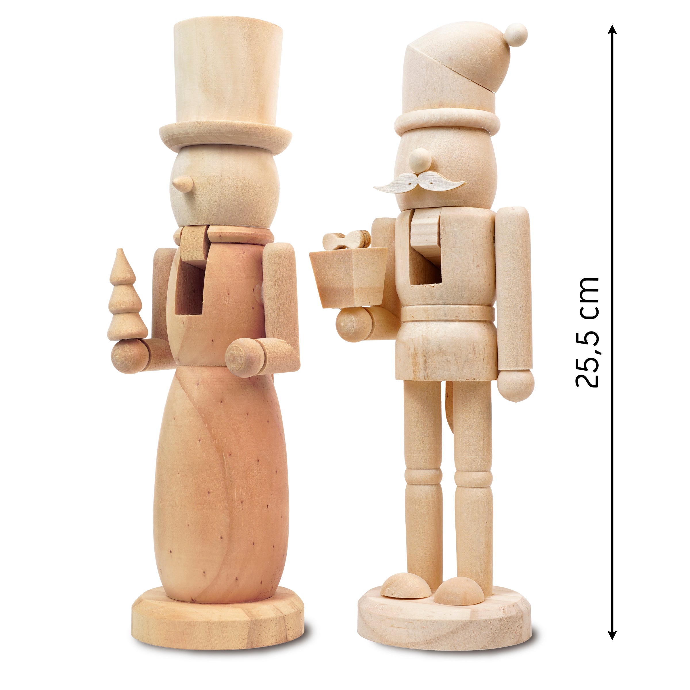 Dieses Set aus zwei Nussknackerfiguren aus Holz ist eine einzigartige Weihnachtsdekoration, die klassischen Stil mit der Möglichkeit zur kreativen Personalisierung verbindet. Die Figuren aus Massivholz bestechen durch ihre Schlichtheit, Robustheit und Eleganz. Sie können naturbelassen oder bemalt werden, um einzigartige Dekorationen zu schaffen, die Ihr Interieur ergänzen. Perfekt als Weihnachtsdekoration für Zuhause oder Büro oder als kreatives Geschenk für Liebhaber klassischer Dekoration.