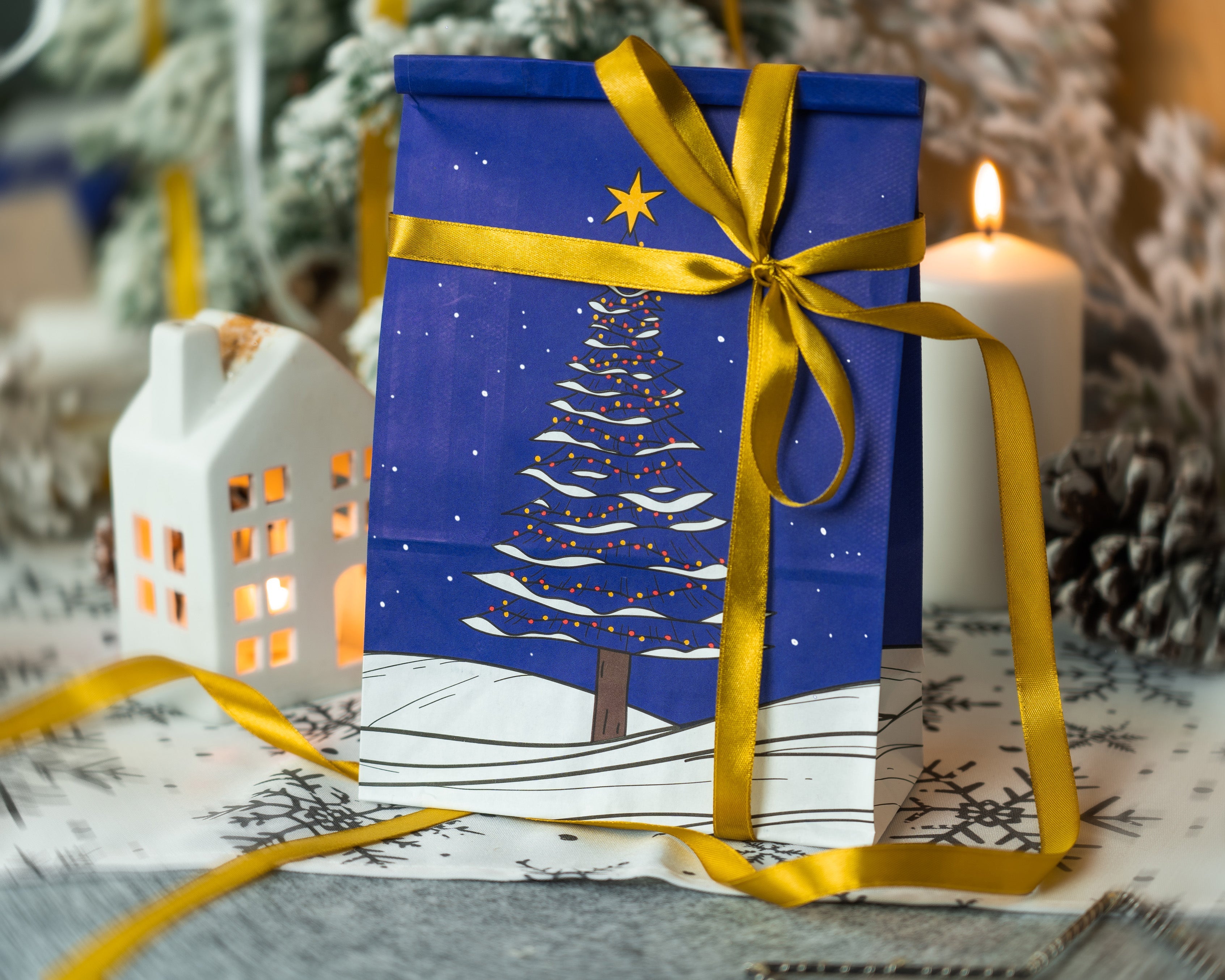 Weihnachtspapiertüte 160x80x270mm Weihnachtsbaum