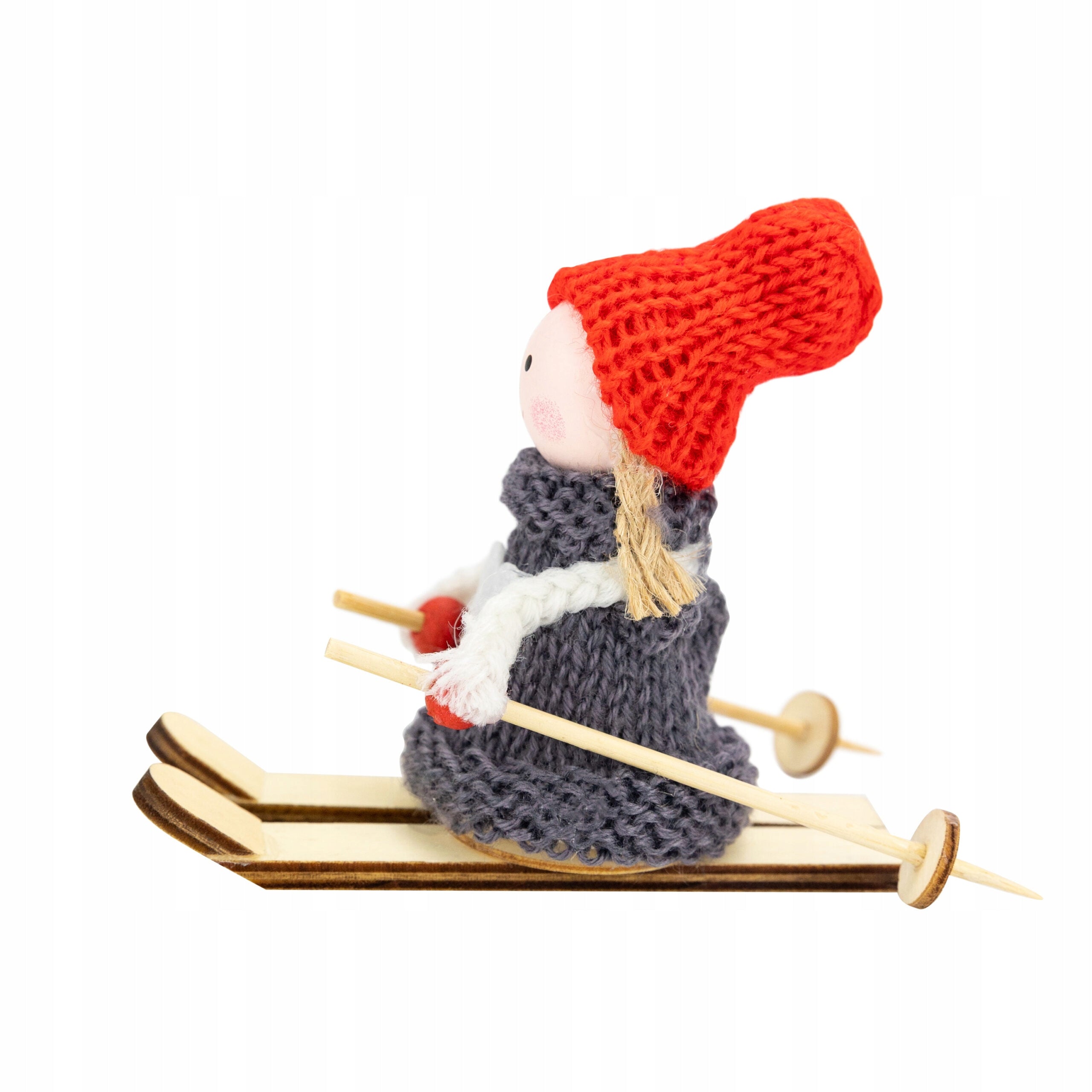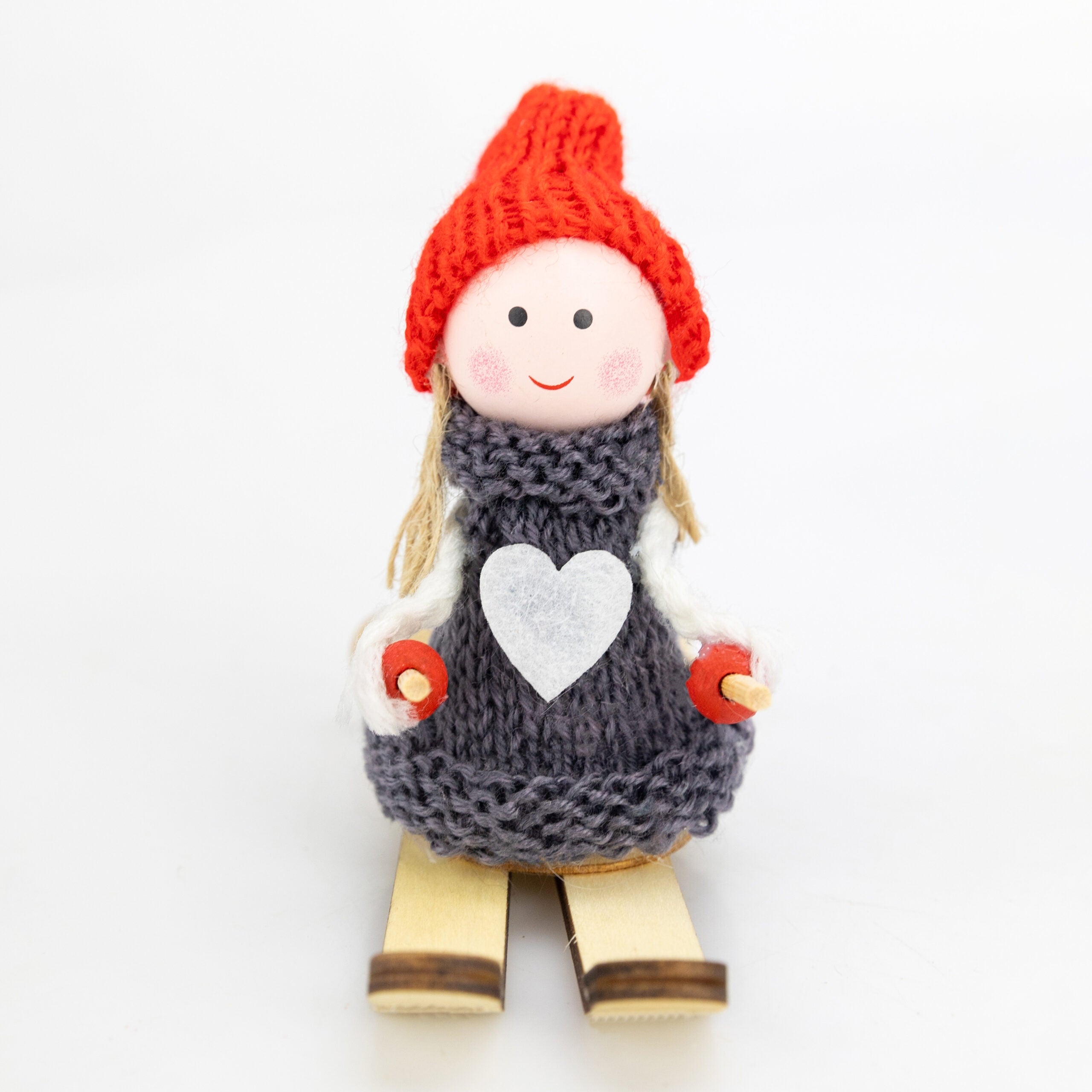 Die Weihnachtsfigur eines Mädchens mit Skistöcken verleiht jedem Interieur Charme und sorgt für eine warme und fröhliche Weihnachtsatmosphäre.