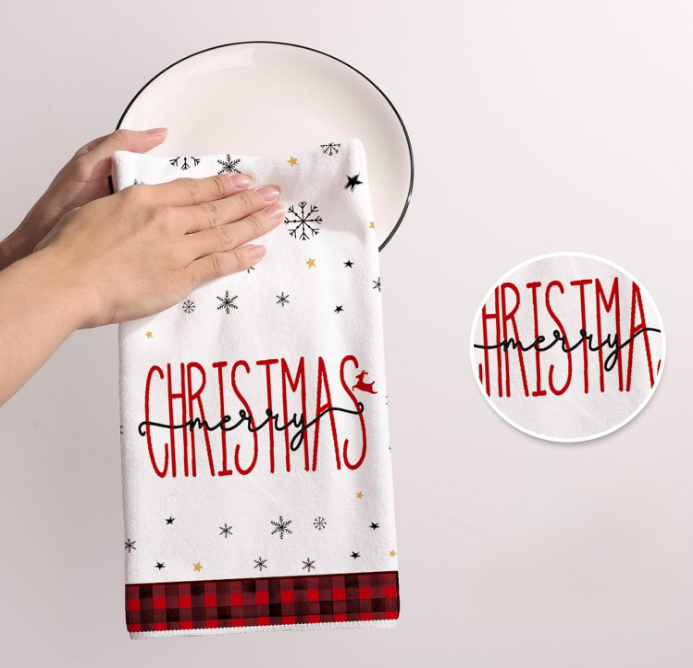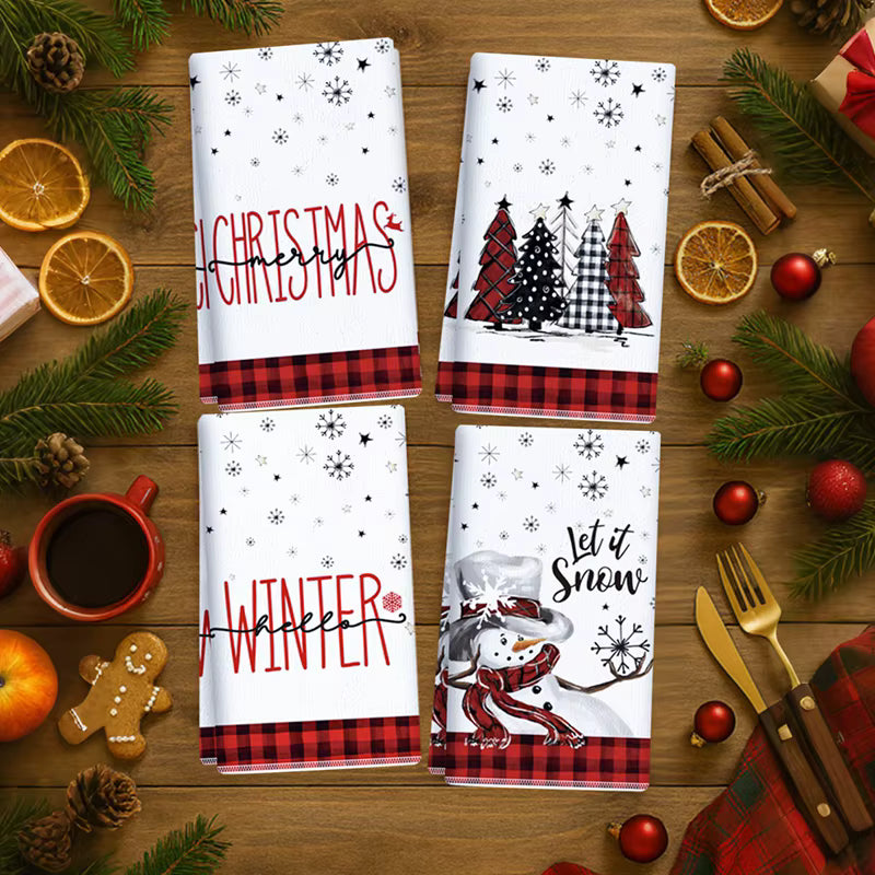 Dieses 4er-Set Weihnachts-Küchentücher vereint Funktionalität und weihnachtlichen Stil perfekt. Weiche, saugfähige und schnelltrocknende Handtücher mit bezaubernden Motiven bringen Wärme, Freude und festlichen Zauber in Ihre Küche. Sie eignen sich perfekt für den täglichen Gebrauch und als elegantes Geschenk für Ihre Lieben.