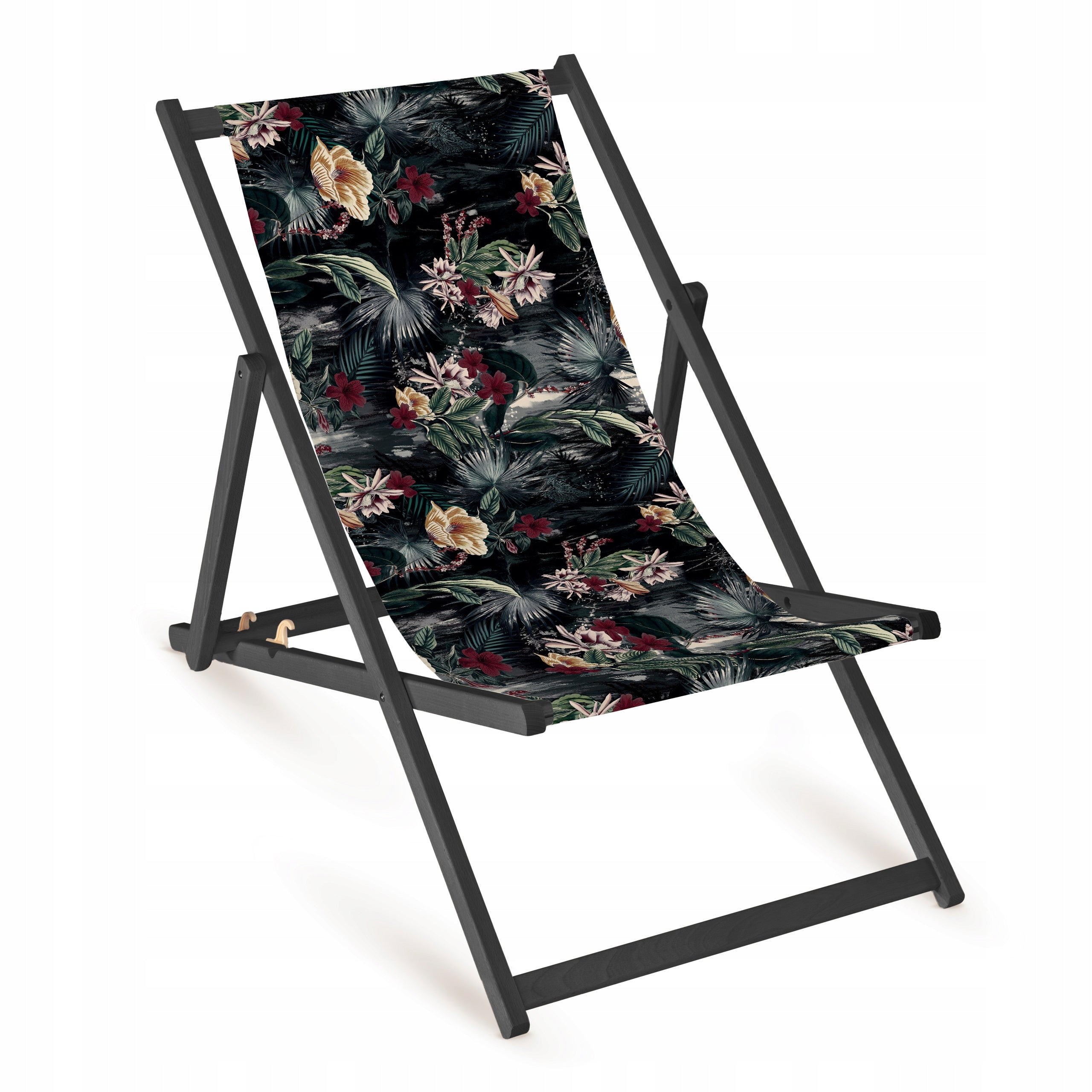 Holz-Liegestuhl Pink Monstera Fullprint mit schwarzem Gestell
