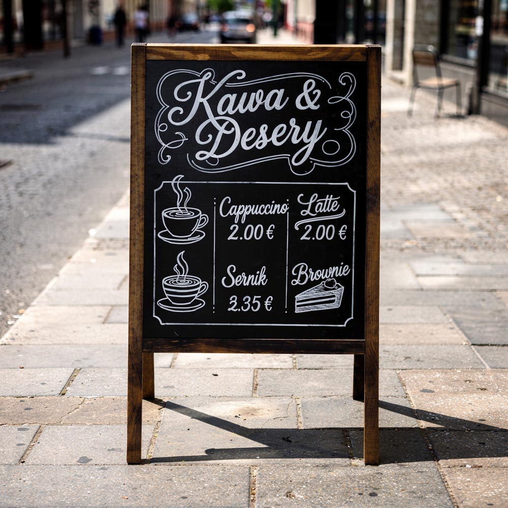 Panneau de trottoir, support publicitaire, double face, tableau noir en bois, 60 x 100 cm
