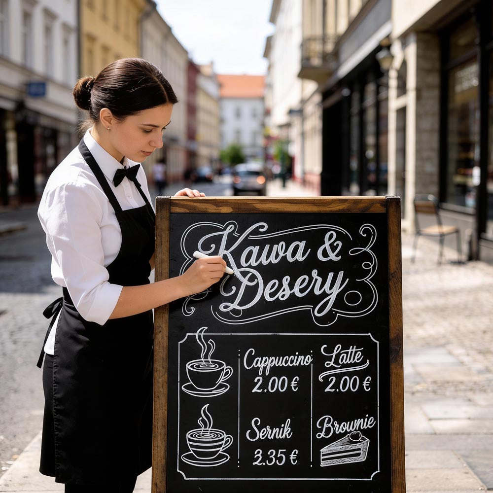 Ce présentoir publicitaire en bois pour trottoir séduit par ses tableaux noirs double face , son design naturel et sa grande stabilité . Idéal pour mettre en valeur vos offres et messages : flexible, élégant et efficace pour tout espace commercial.