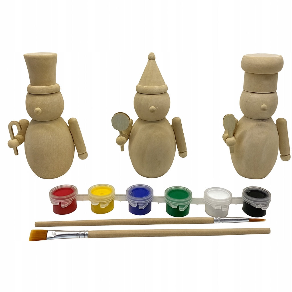 Dieses Set aus drei hölzernen Nussknackern ist ein einzigartiges Angebot für Menschen, die kreative Weihnachtsdekorationen lieben. Jede Figur ist aus Naturholz gefertigt und kann direkt bemalt werden – Sie können sie mit Farben, Buntstiften oder Filzstiften verzieren und so einzigartige Kompositionen kreieren. Das Set enthält außerdem Farben und Pinsel und eignet sich daher perfekt als kreatives Geschenk oder als Idee für die Weihnachtsvorbereitungen der Familie.