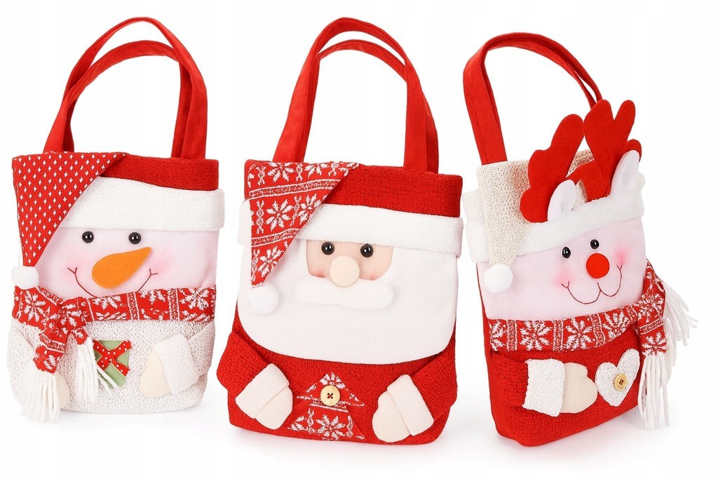 Diese Weihnachtsgeschenktüte unterstreicht den einzigartigen Charakter Ihrer Weihnachtsgeschenke. Sie besteht aus weichem, angenehm anzufassendem Material und zeigt einen süßen Weihnachtsmann mit Weihnachtsbaum und festlichen Details. Die robuste Konstruktion und die praktischen Griffe sorgen für eine einfache Handhabung, und das strapazierfähige Material ermöglicht wiederholte Verwendung. Es ist eine elegante und umweltfreundliche Alternative zu Einweg-Papierverpackungen.