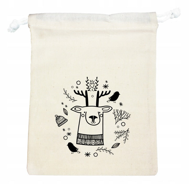 Weihnachtstüte aus Baumwolle Rentier, 100 x 150 mm