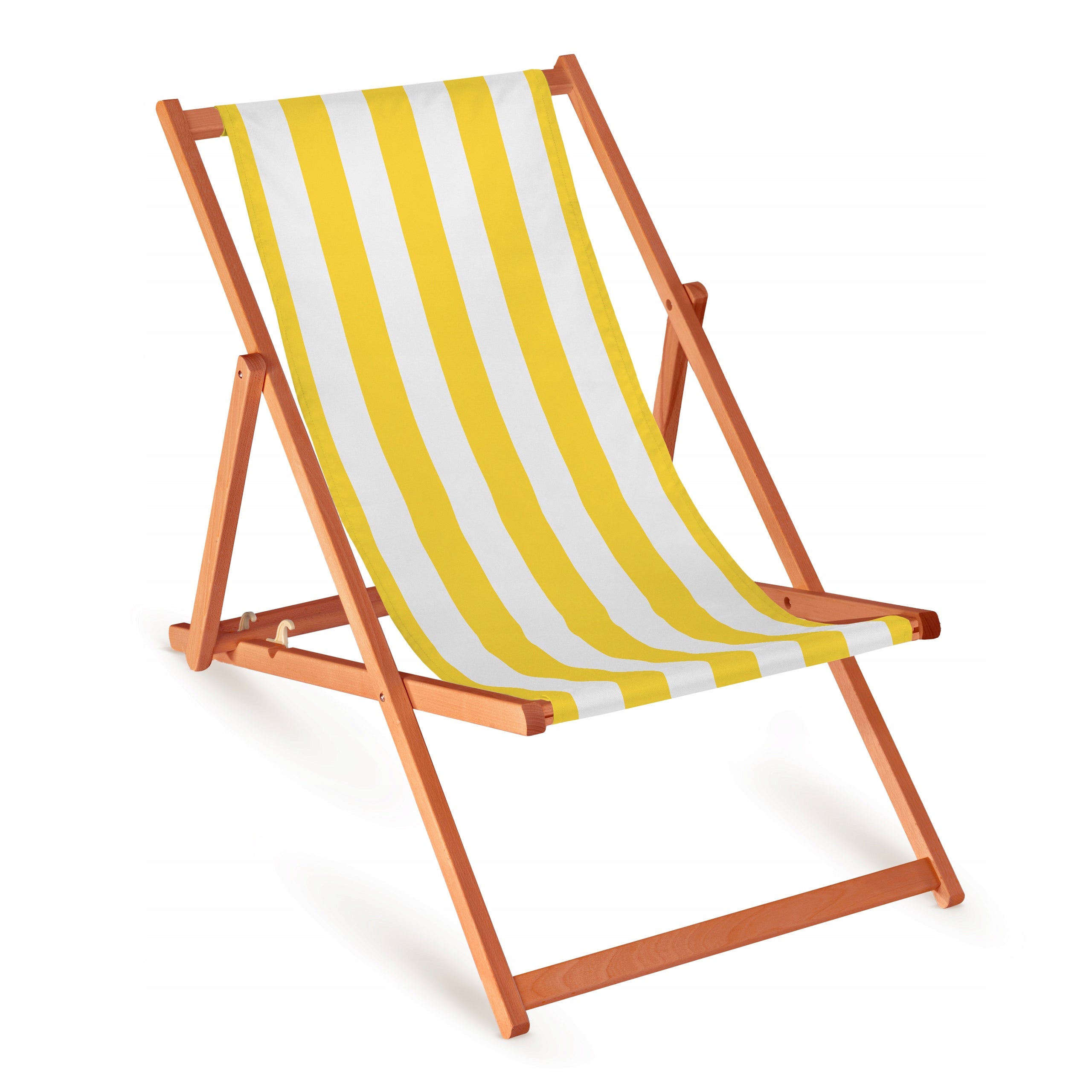 Holz-Liegestuhl Gelb-Weiße Streifen mit orangefarbenem Gestell