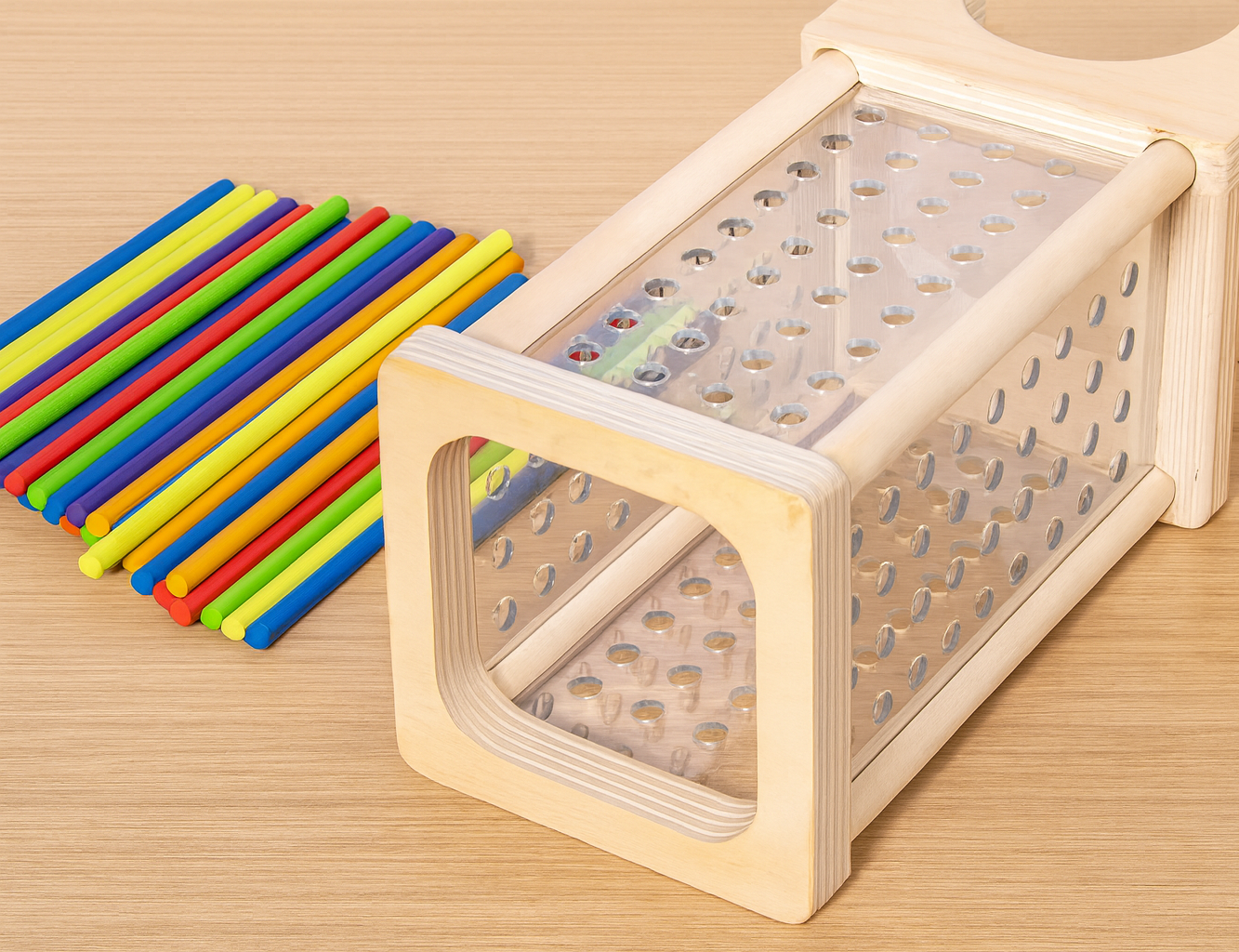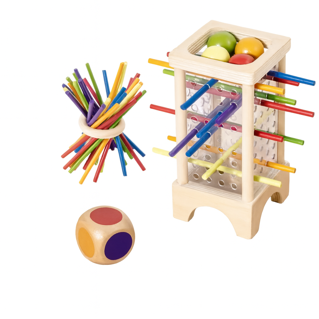 • Einfache Regeln:Das Kind analysiert, welche Stäbchen es entfernen muss, und trainiert so Konzentration und Bewegungsplanung.