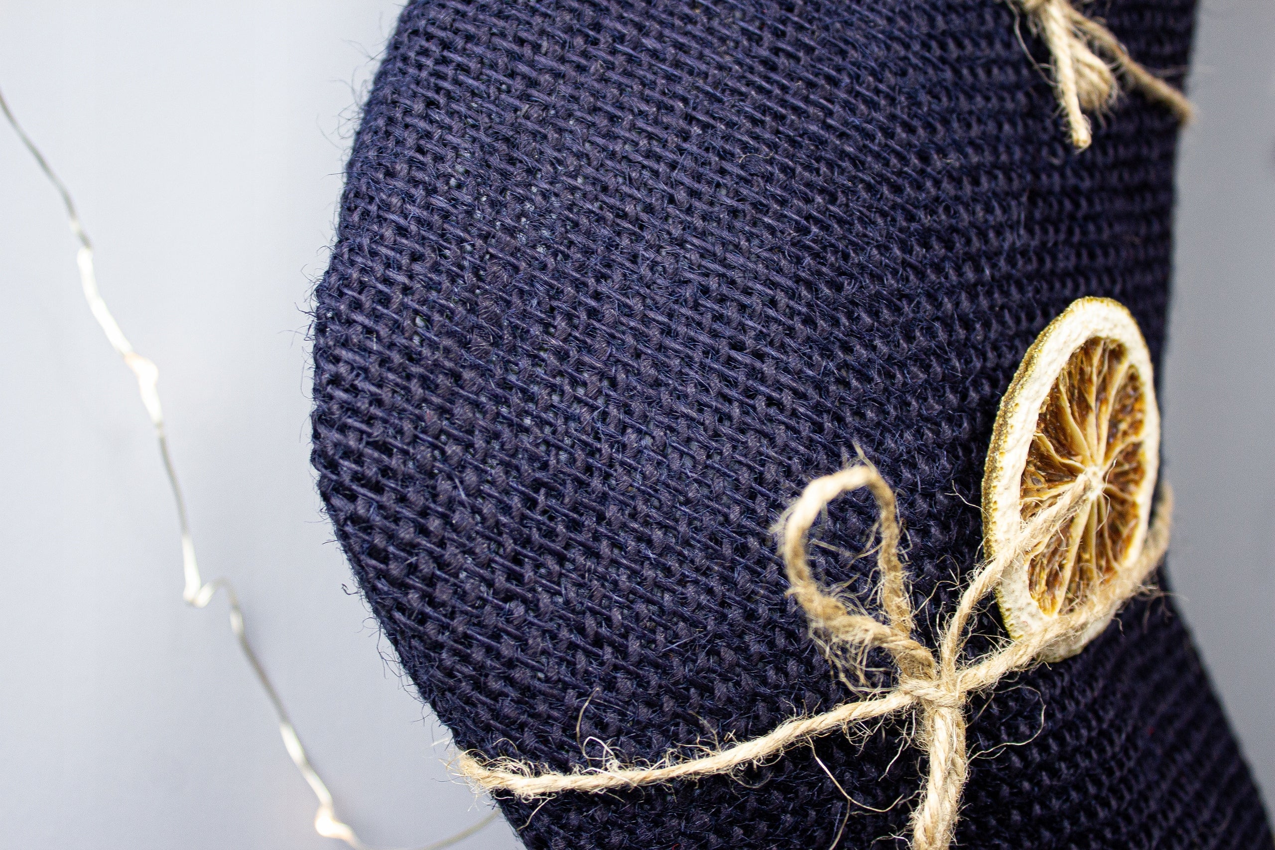 Verleihen Sie Ihrem Interieur Eleganz und festlichen Charme mit einem marineblauen Jute-Strumpf – einer praktischen und stilvollen Weihnachtsdekoration.