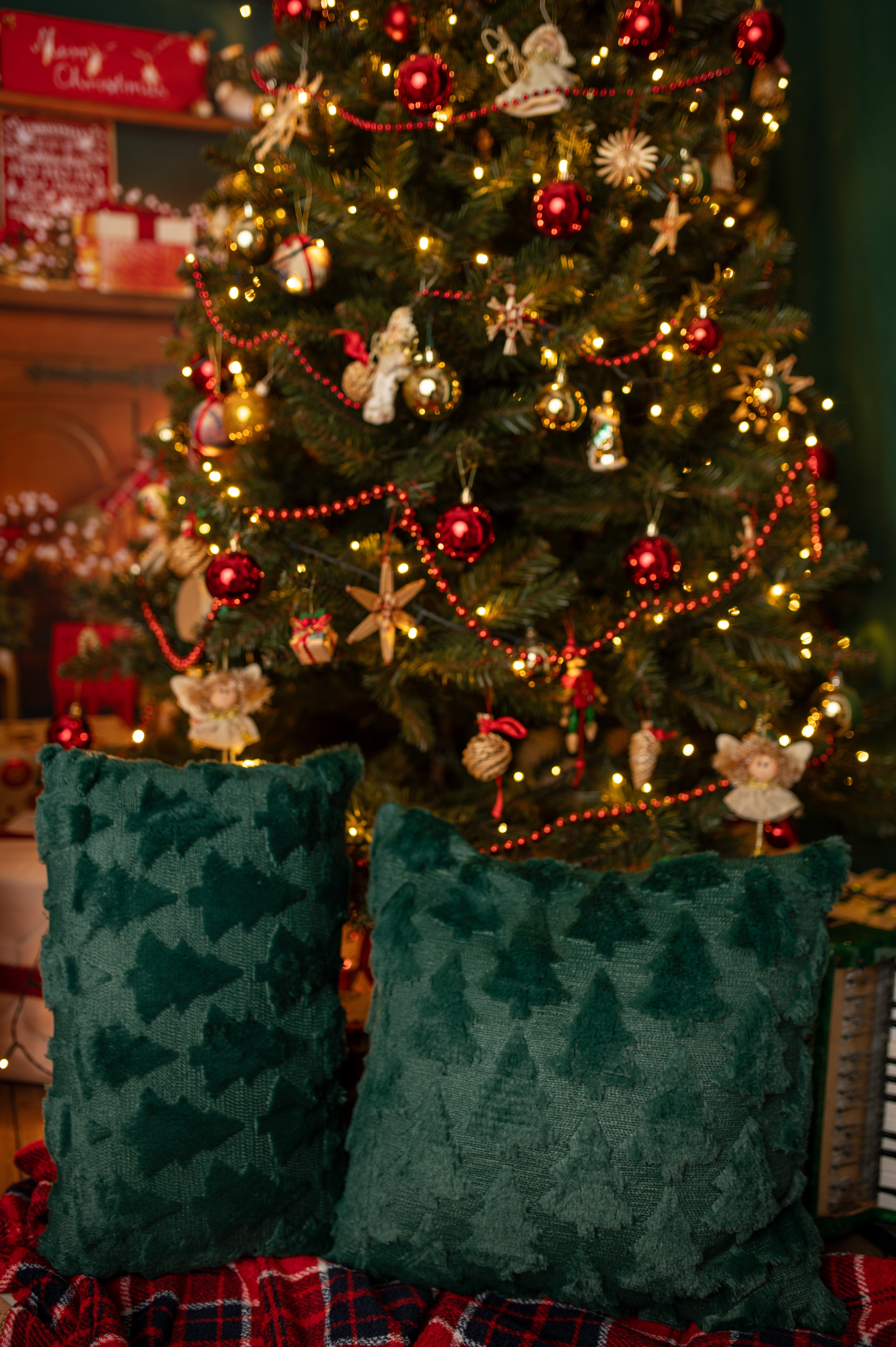 Dieses dekorative Weihnachtskissen vereint Eleganz, Komfort und die magische Atmosphäre von Weihnachten. Gefertigt aus weichem, flaschengrünem Stoff und verziert mit einem erhabenen Weihnachtsbaummotiv, passt es perfekt in jede winterliche Einrichtung. Perfekt für Wohnzimmer, Schlafzimmer oder als Geschenk für Ihre Lieben – es verleiht Wärme, Stil und eine gemütliche Atmosphäre.
