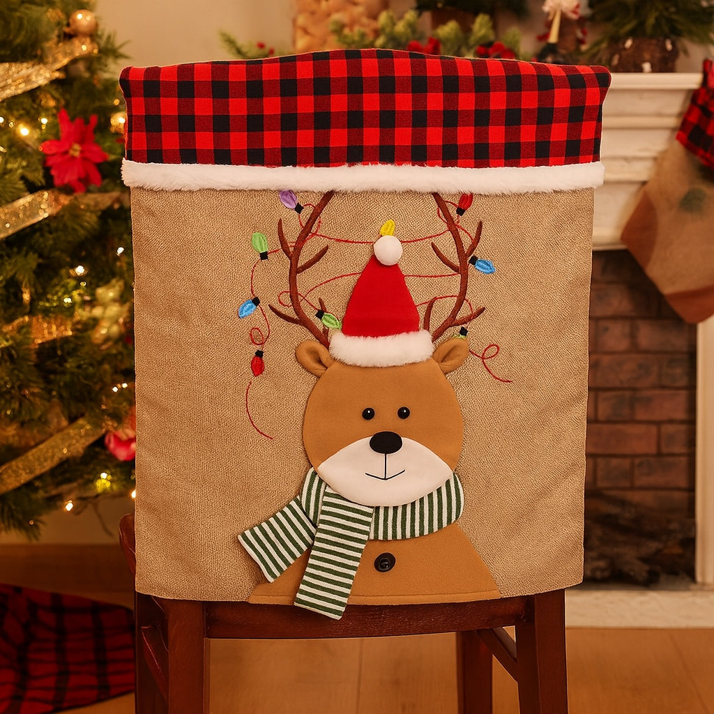 • Das rot-schwarze Karomuster des Rentiers verleiht jedem Stuhllehnenbezug Gemütlichkeit und einen einzigartigen, winterlichen Charakter.