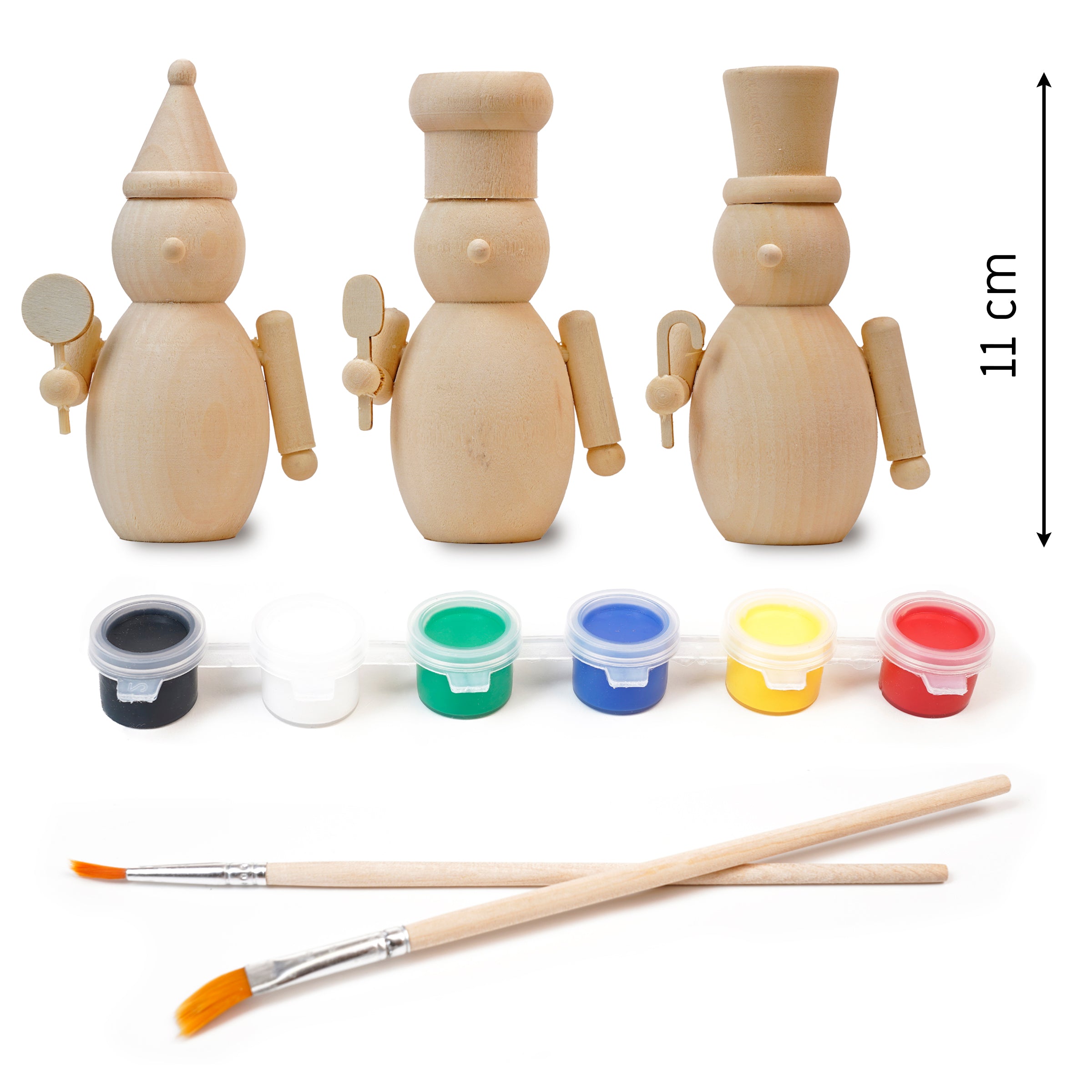 Dieses Set aus drei hölzernen Nussknackern ist ein einzigartiges Angebot für Menschen, die kreative Weihnachtsdekorationen lieben. Jede Figur ist aus Naturholz gefertigt und kann direkt bemalt werden – Sie können sie mit Farben, Buntstiften oder Filzstiften verzieren und so einzigartige Kompositionen kreieren. Das Set enthält außerdem Farben und Pinsel und eignet sich daher perfekt als kreatives Geschenk oder als Idee für die Weihnachtsvorbereitungen der Familie.
