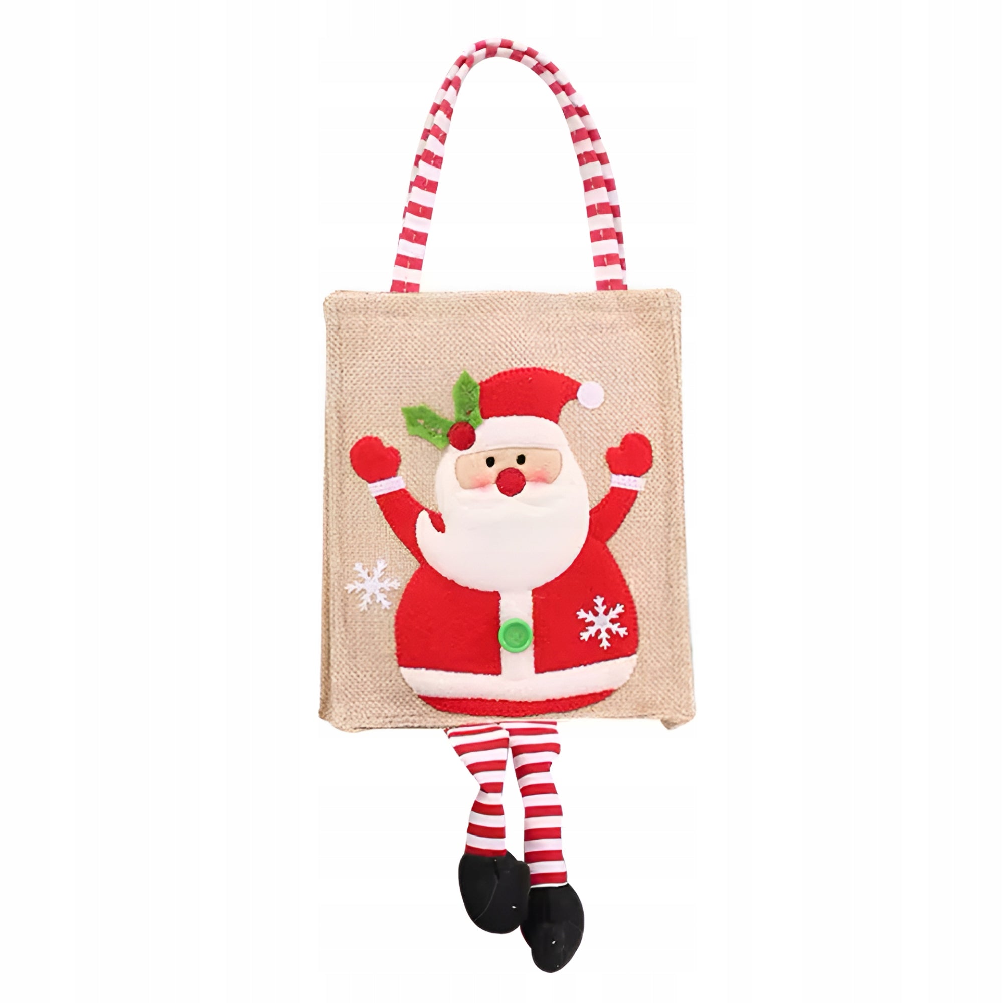 Eine Weihnachtsgeschenktüte mit Weihnachtsmann-Motiv ist die perfekte Möglichkeit, Geschenke in einem einzigartigen, fröhlichen Stil zu verpacken. Hergestellt aus natürlicher Jute vereint sie Haltbarkeit, Umweltfreundlichkeit und einzigartigen Charme. Der fröhliche Weihnachtsmann mit seinen langen, gestreiften Beinen sorgt für eine gemütliche, festliche Atmosphäre. Die Tasche eignet sich perfekt zum Verpacken von Süßigkeiten, Schmuck, Kosmetika oder kleinen Geschenken – für Kinder und Erwachsene.