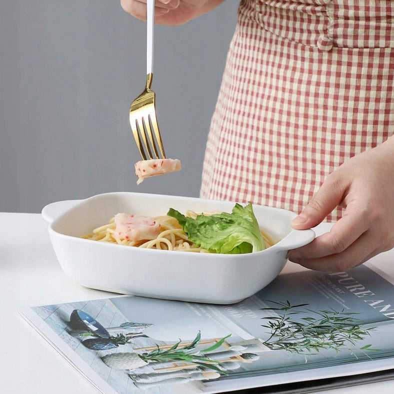 Die ofenfeste Keramikform ist eine praktische und ästhetische Lösung zum Backen und Servieren von Speisen. Dank seiner soliden Konstruktion, Temperaturbeständigkeit und komfortablen Griffe eignet es sich sowohl für den täglichen Gebrauch als auch für besondere Anlässe und verleiht jeder Mahlzeit Eleganz.
