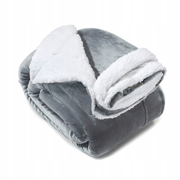 • Diese doppelseitige Decke besteht aus einer Kombination aus weichem Mikroflanell und flauschigem Sherpa.