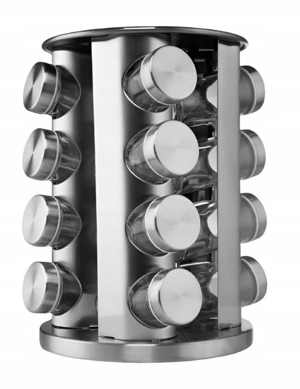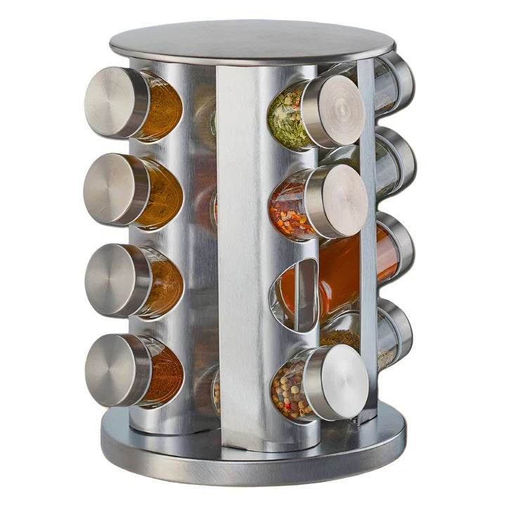 Der Gewürz-Organizer aus Edelstahl mit 16 Gläsern kombiniert Eleganz, Funktionalität und Langlebigkeit. Dank seiner 360°-Drehfunktion haben Sie alle Gewürze stets griffbereit. Ideal für Küche, Vorratsraum oder als stilvolles Geschenk – ein moderner Helfer für perfekte Ordnung und frische Aromen.