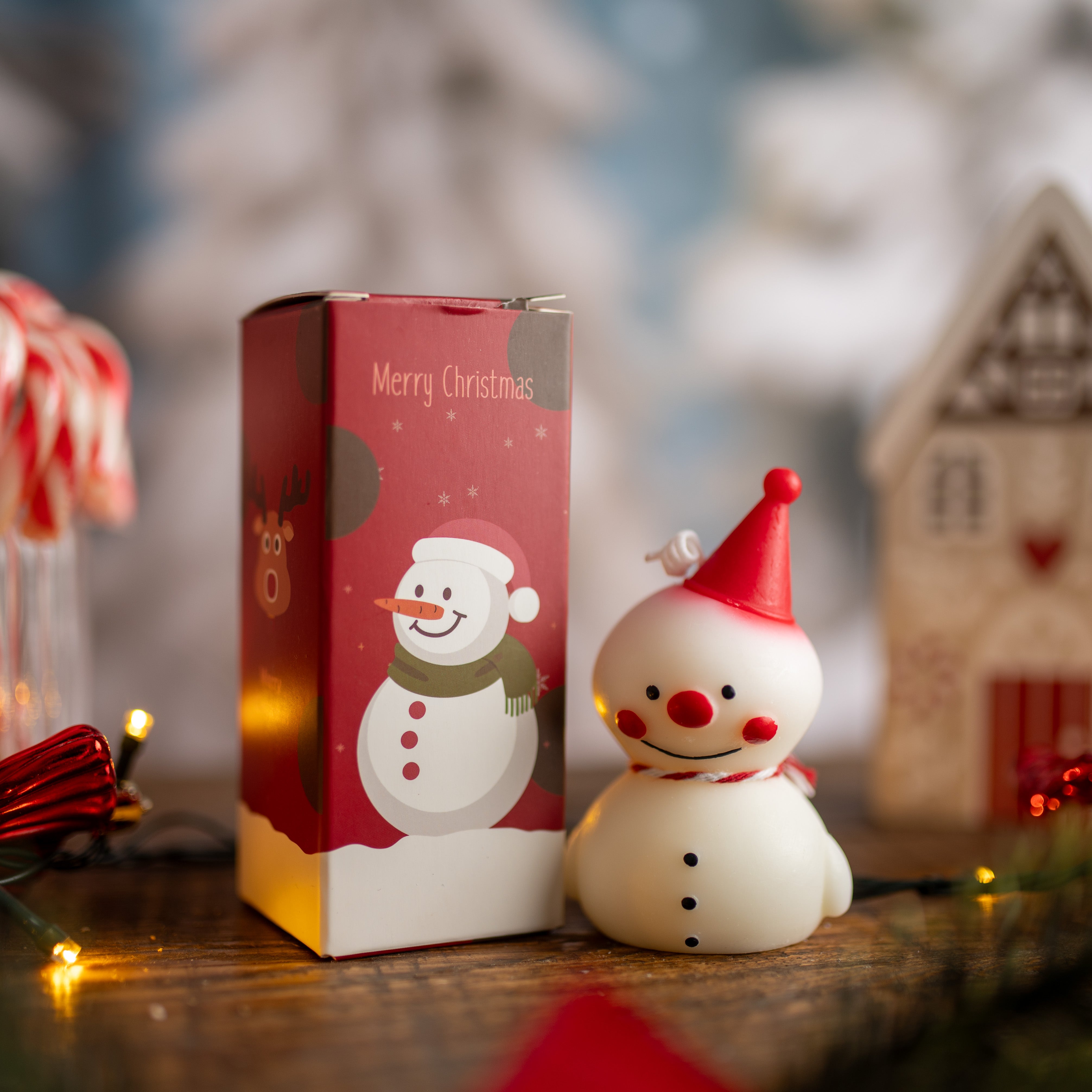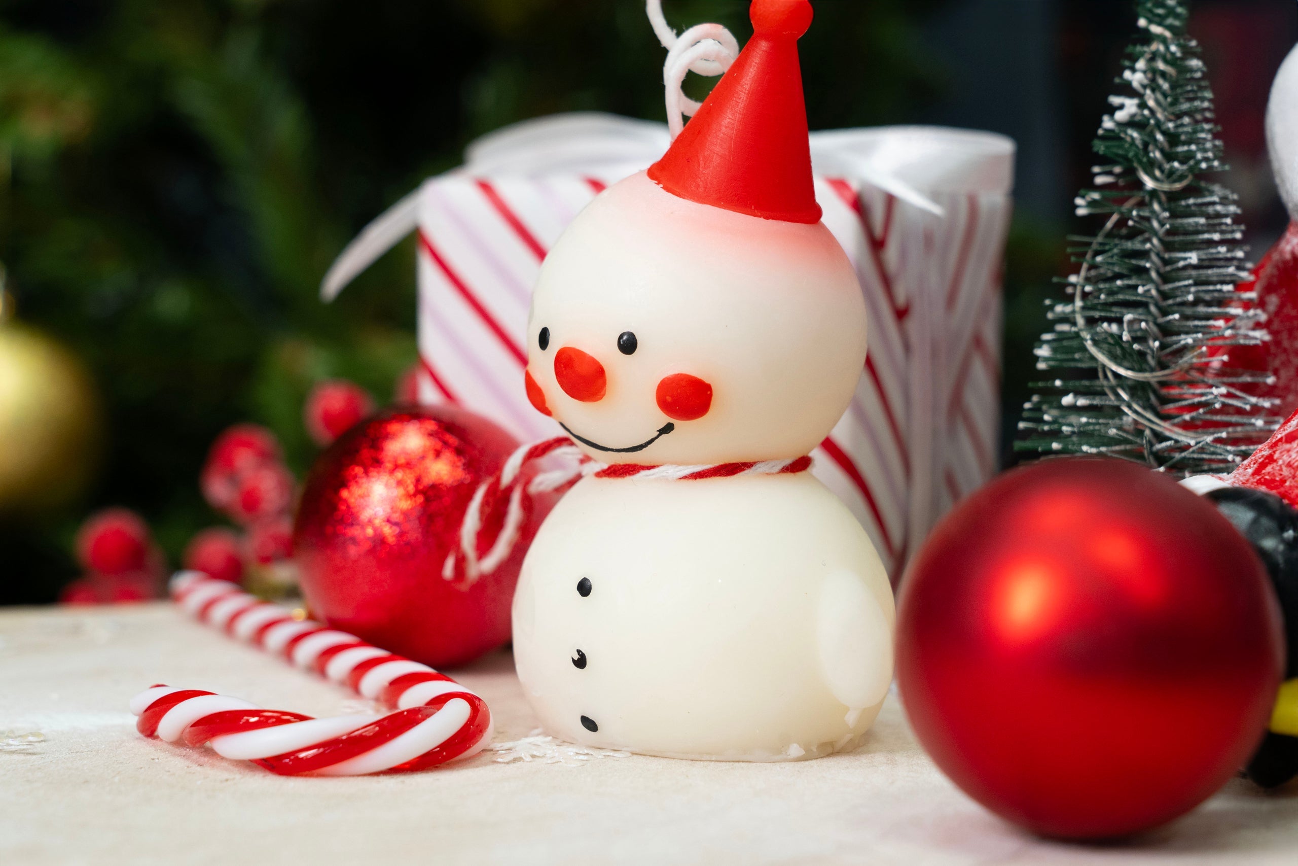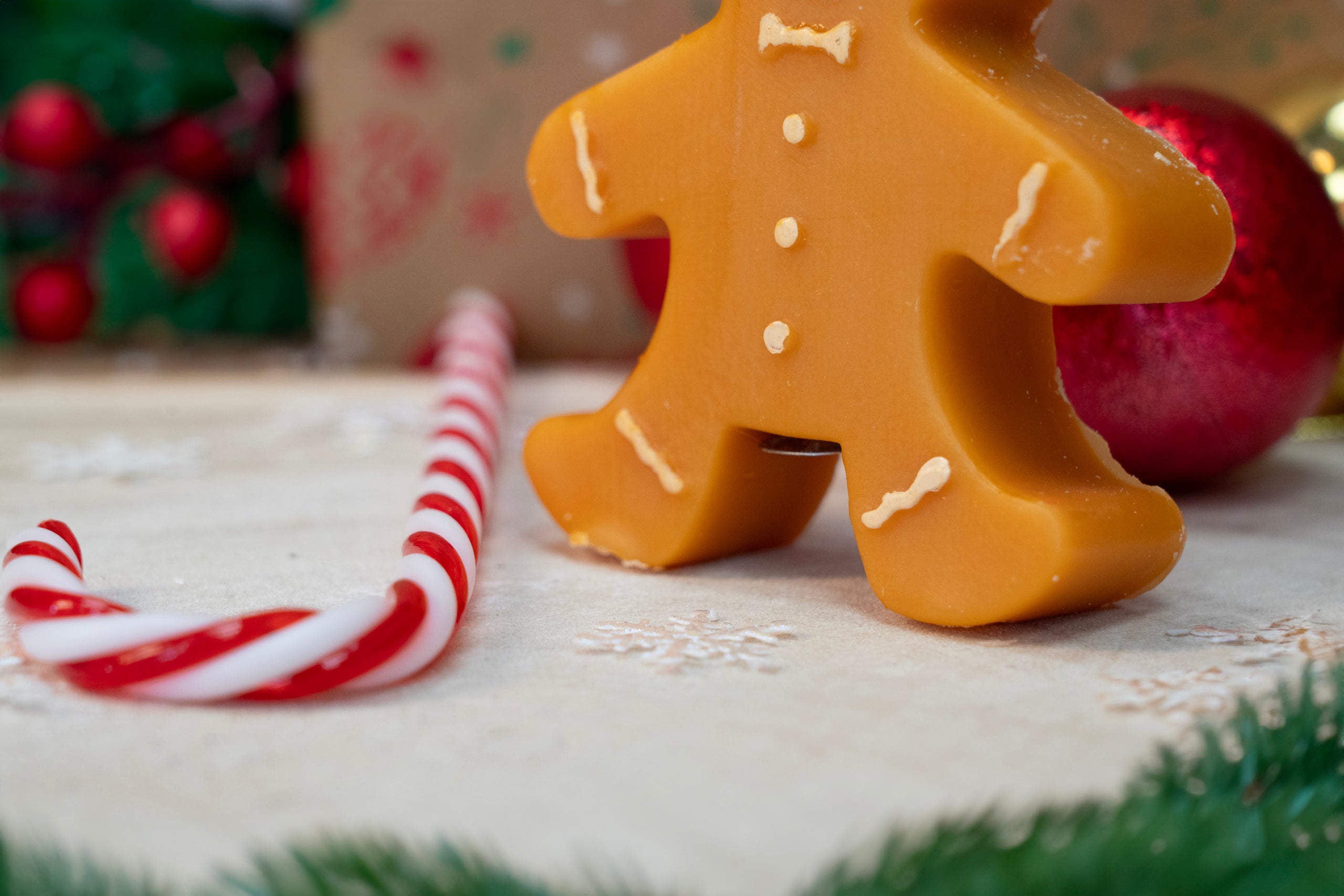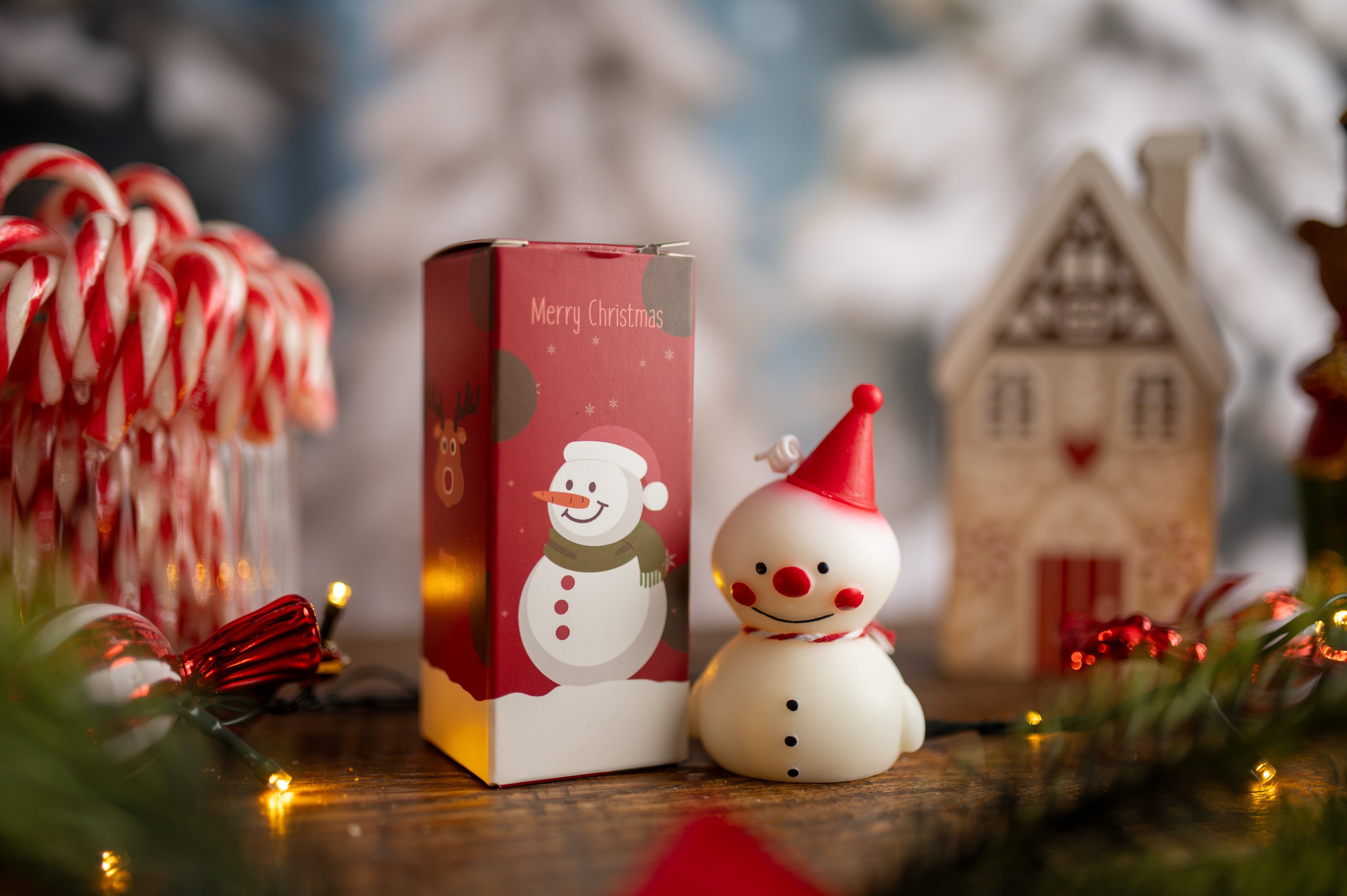 - Eine bezaubernde Kerze mit weihnachtlichem Thema – erhältlich in den Varianten: Lebkuchenmann, Weihnachtsbaum oder Schneemann.