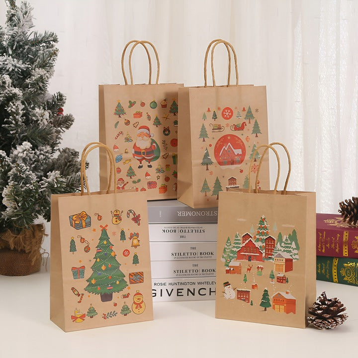 Papiertüte mit gedrehtem Henkel 210x80x150mm braun Weihnachtsmuster 4St.