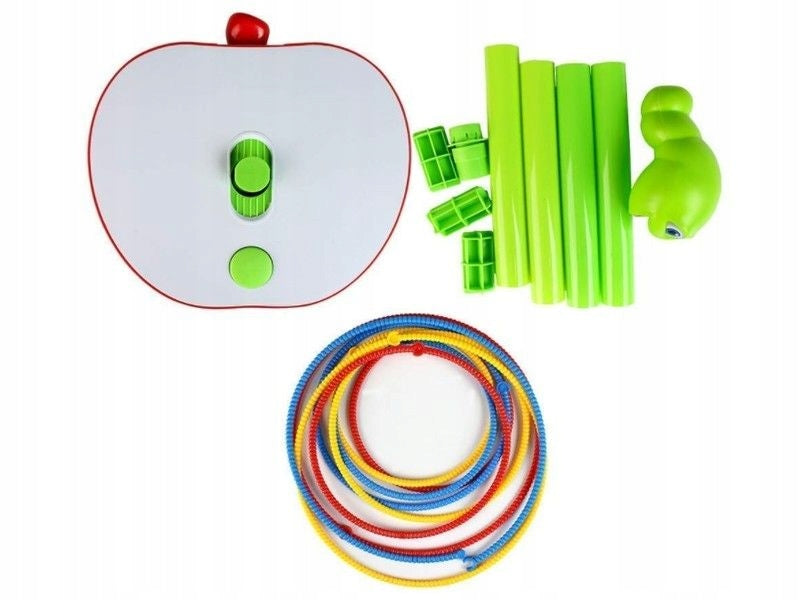 • Bausatzkomponenten: Apfelförmiger Sockel, faltbarer Wurm, Ringe