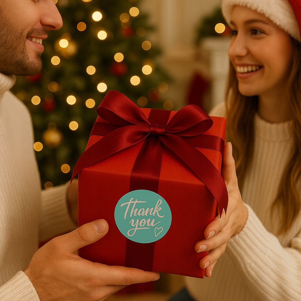 Runde „Danke“-Aufkleber in Pastell-Mint-Ton sind ein elegantes Detail, das jedem Paket Charme verleiht. Sie sind einfach anzuwenden, praktisch und sehr effektiv – schon eine Anwendung genügt, um einem Geschenk oder Paket einen einzigartigen Charakter zu verleihen. Sie sind die perfekte Lösung für alle, die bei jedem Geschenk Wert auf Ästhetik und Liebe zum Detail legen.