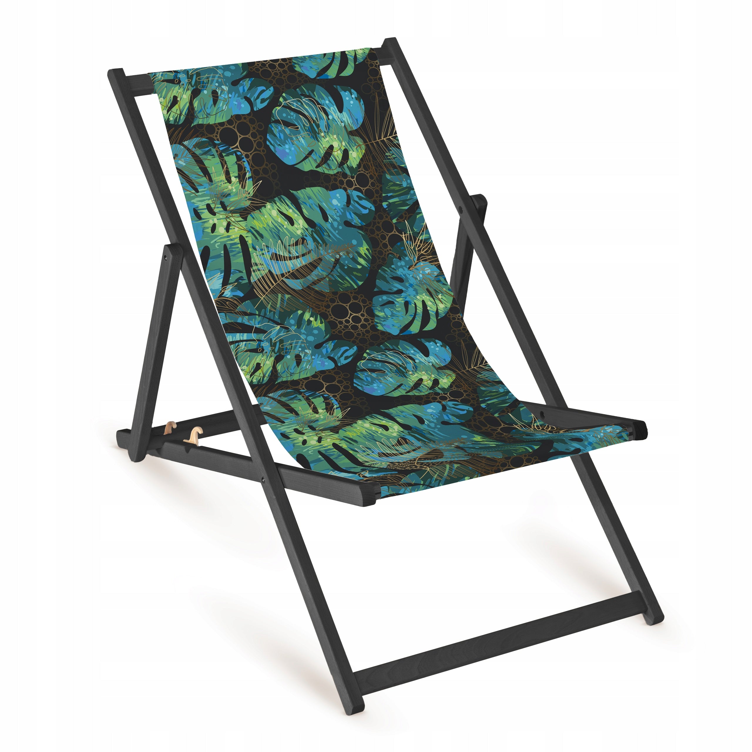 Holz-Liegestuhl Monstera-Blätter Fullprint mit schwarzem Gestell