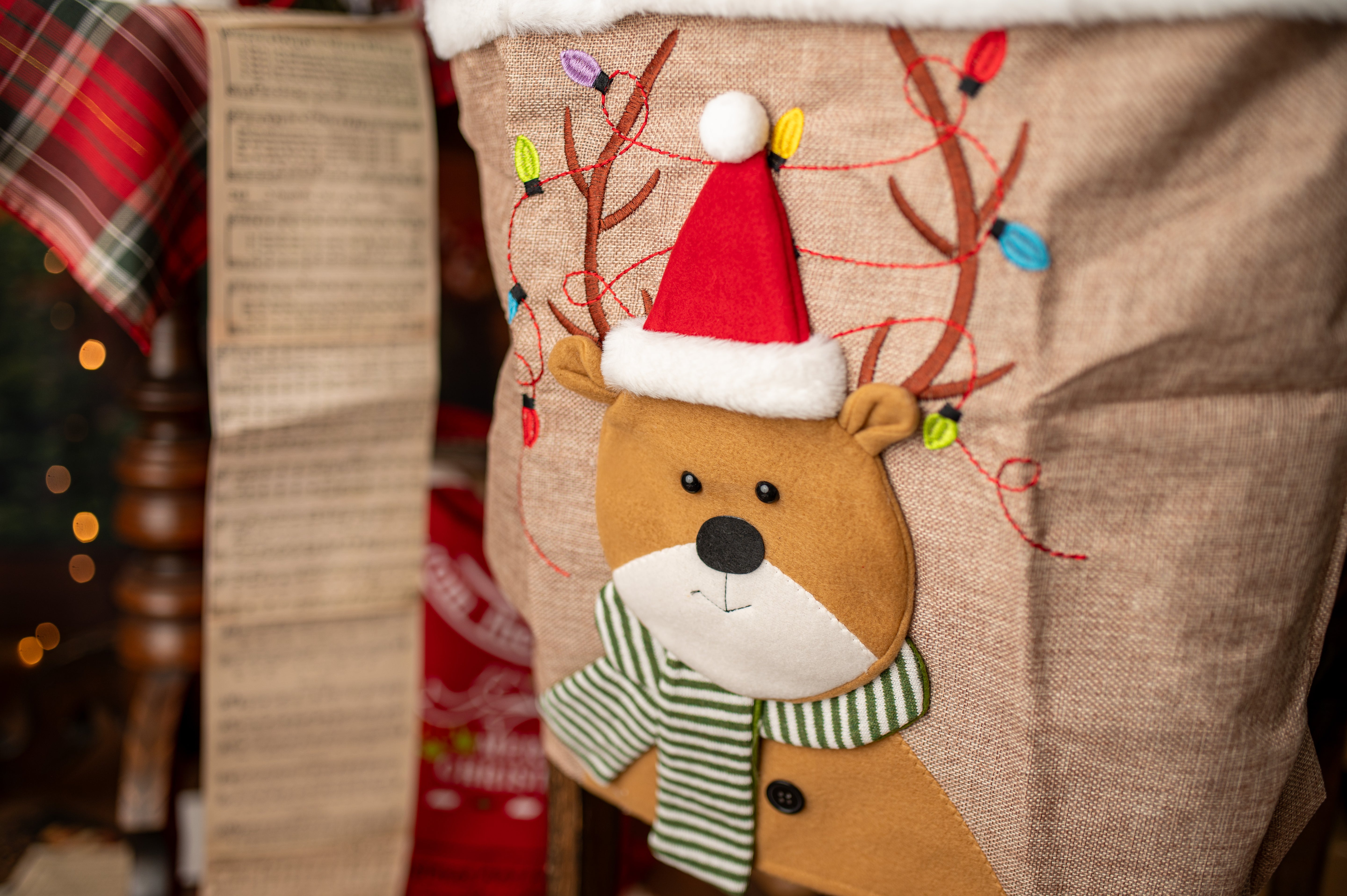 • Das rot-schwarze Karomuster des Rentiers verleiht jedem Stuhllehnenbezug Gemütlichkeit und einen einzigartigen, winterlichen Charakter.